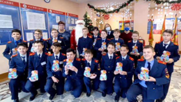 В Чувашской Республике Полицейский Дед Мороз поздравил учеников кадетского класса ГИБДД и провёл для них викторину