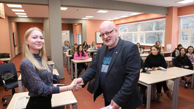 Что такое новогодние кружева, чем так притягателен новогодний портрет, отчего новогодний пейзаж так радует глаз и чем хорош новогодний сюжет? На эти вопросы постарались ответить члены жюри конкурса фотографий среди студентов Нижегородского государственного лингвистического университета им. Н.А Добролюбова, проведенного этим учебным заведением совместно с Нижегородским областным информационным центром (НОИЦ) и Центром журналистских технологий. Итоги конкурса с вручением призов и «разбором полетов» подвели на «Медиамастерской: фотография в журналистике» завкафедрой международной журналистики НГЛУ Елена Кузнецова, главный редактор газеты «Нижегородские новости» Андрей Клещев и фотокорреспондент НОИЦ Александр Воложанин. Членами жюри, помимо названных, являлись директор Центра журналистских технологий Наталья Скворцова и известный журналист Игорь Становов.Главный итог — неравнодушие студентов, их желание видеть «особенный мир» и стремление рассказать об этом видении через свои фотоработы. У кого-то из ребят это получилось лучше, у кого-то хуже, но старались все, и выбрать победителей членам жюри было очень трудно.Александр Воложанин подробно разобрал работы ребят, аргументировал выбор жюри, отметил достоинства победителей и недостатки не выигравших фотографий участников. Елена Кузнецова и Андрей Клещев рассказали студентам о своих впечатлениях от конкурса и дали несколько рекомендаций на будущее. Итоги конкурса таковы. В номинации «Новогодние кружева» победила студентка второго курса Виктория Кузнецова, в номинации «Новогодний портрет» – студентка второго курса Ева Шамшетдинова, в номинации «Новогодний пейзаж» – студентка второго курса Мария Дойкова и в номинации «Новогодний сюжет» – студентка первого курса Екатерина Коблова.Все участники «Медиамастерской» сошлись во мнении, что подобные мероприятия стоит продолжать. В планах проведение конкурса – «Один день города глазами молодых». Текст: Андрей Николаев