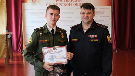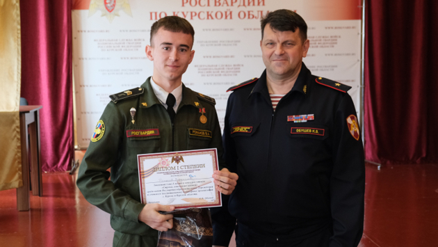 Росгвардейцы среди воспитанников подшефных кадетских классов школ № 60 , 17, 15 и групп Курского автотехнического колледжа провели конкурс чтецов Конкурс «Строки, опаленные войной» приурочен к 77-ой годовщине Победы в Великой Отечественной войне. Всего в конкурсе участвовало около 20 учащихся, рассказали в пресс-службе ведомства. Названы победители конкурса. Диплом Гран-при получила София Сороколетовских ученица 8 класса СОШ №17, отрывок из книги У войны не женское лицо Л. Гроздь «Мой первый поцелуй». 1 место Владислав Романов учащийся Курского автотехнического колледжа, стихотворение Муса Джали «Варварство»; Елизавета Конева ученица 7 А класса СОШ №15, отрывок из книги А.А. Тимофеева-Егорова «Я «Береза!». 2 место София Сумина ученица 7 А класса СОШ №15, отрывок из поэмы «Зоя» М. Алигер ; Андрей Сизов ученик 4 класса СОШ №60, стихотворение А. Твардовский «Высшая честь». 3 место Денис Гембицкий учащийся Курского автотехнического колледжа, Татьяна Страхова «Автопробег в памяти»; Виктория Жулина 7 А класса СОШ №15, стихотворение Р. Рождественский «Баллада о красках». Начальник территориального Управления генерал-майор Константин Обушев пожелал всем участникам конкурса удачи и творческих успехов. А еще руководитель ведомства прочел стихотворение «Родная земля» собственного сочинения (редакция "КИ" оставила орфографию и пунктуацию автора): Ромашкин луг я обниму руками Душой мятежной в поле растелюсь, В родную землю я упрусь ногами А сердцем в небо к солнцу устремлюсь. Я буду слышать плеск волны на речке, Я буду видеть как танцует лес, Всё это в музыке прекрасной русской речи Всё это дар всевышнего с небес. Моя Россия, матушка родная, Твои просторы, даль лихих дорог Через глубины временем мерцают, Лампады знаний - мудрый твой урок.