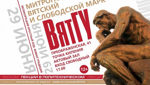 Лекция пройдет как финальное мероприятие фестиваля «Вятка – душа России. Великорецкий крестный ход» Вятского государственного университета.