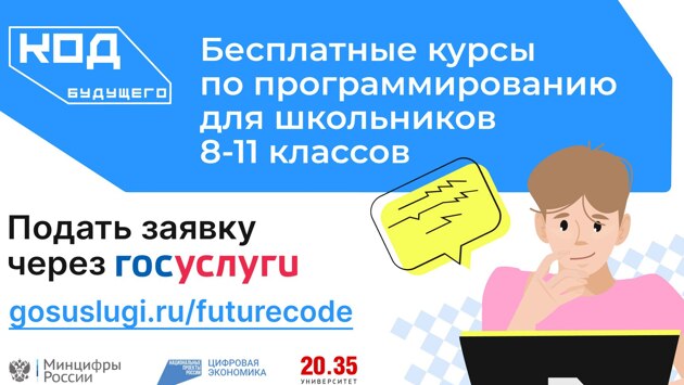 Ростовская область, 28 июля 2023. DON24.RU. Донских школьников 8–11-х классов и студентов колледжей приглашают в проект «Код будущего». Ребят бесплатно обучат языкам программирования. Прием заявок стартовал. Выбрать можно из 70 курсов. Запись ведется через портал «Госуслуги». «Для успешной карьеры в программировании необходимо иметь хорошие знания в области математики и информатики. Также важно иметь навыки работы с языками программирования. И проект «Код будущего» – отличная возможность для школьников «войти в IТ», изучить основы и, вполне вероятно, определиться с будущей профессией», – говорит глава минцифры Ростовской области Евгений Полуянов. На портале госуслуг представлены курсы начального, базового и продвинутого уровней подготовки. Обучение проходит как онлайн, так и в офлайн-формате. Интерактивная карта площадок для очных занятий также представлена на «Госуслугах». Успешно сдав итоговые экзамены, школьники и студенты колледжей получат сертификат об окончании курса. Заявления на обучение принимают до 30 сентября, сообщили в донском правительстве.