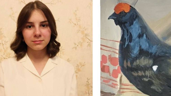 На конкурс Елена представила «Натюрморт с тетеревом» - работа выполнена гуашью и посвящена природе родного края. Всего же на конкурс прислали около 600 работ.