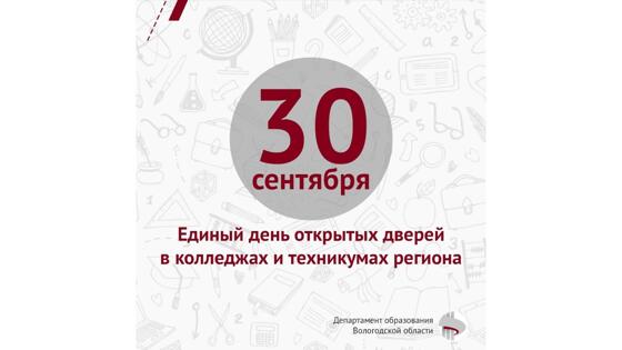 Единый день открытых дверей пройдет 30 сентября. Будущие выпускники и их родители познакомятся с направлениями подготовки, инфраструктурой и материально-технической базой колледжей и техникумов, а также мероприятиями и проектами для студентов.
