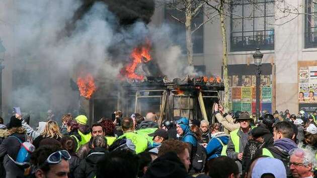 С этого момента акция перестала быть мирной. Протестующие разбирали булыжную мостовую, швыряли в полицейских камни и мусор, воздвигали баррикады, поджигали газетные киоски на Елисейских полях. Сотрудники сил правопорядка отвечали им слезоточивым газом, водяными пушками и резиновыми пулями. Вскоре протестующие хулиганы принялись громить бутики и другие заведения на Елисейских полях и в окрестностях.