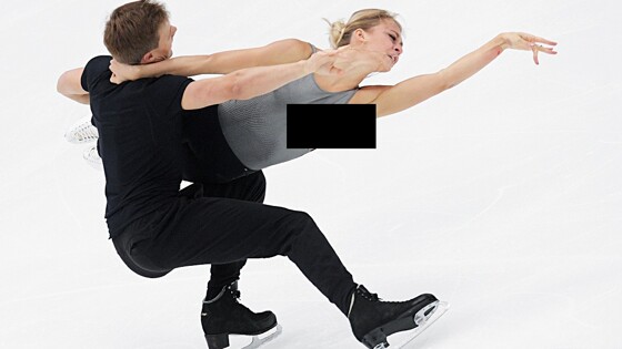У фигуристки Синицыной на контрольном прокате обнажилась грудь. Поклонники в восторге