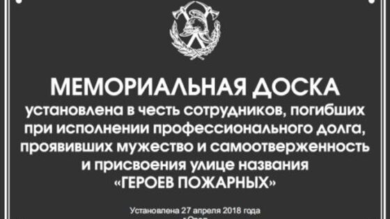 В Орле откроют мемориальную доску в дань памяти погибшим пожарным