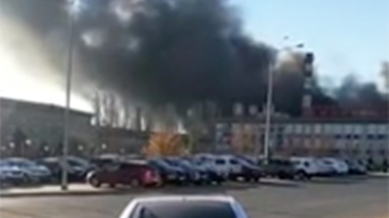 На снятых очевидцами кадрах видно, что из здания валят клубы черного дыма — ветром их относит к реке.