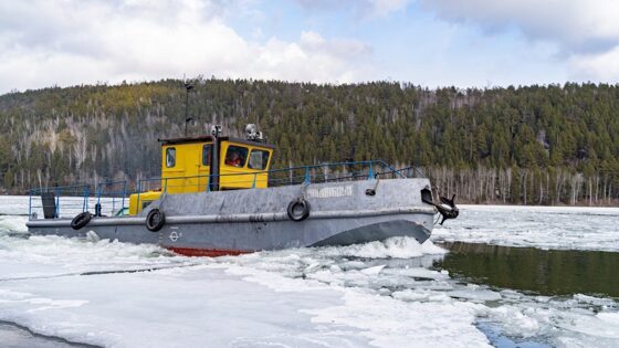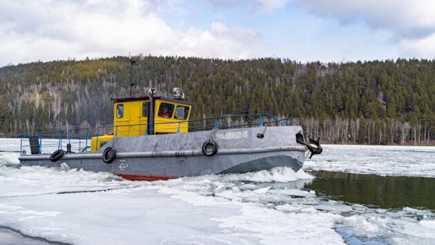 Ледокольные работы проводят для проведения безаварийного пропуска паводковых вод.