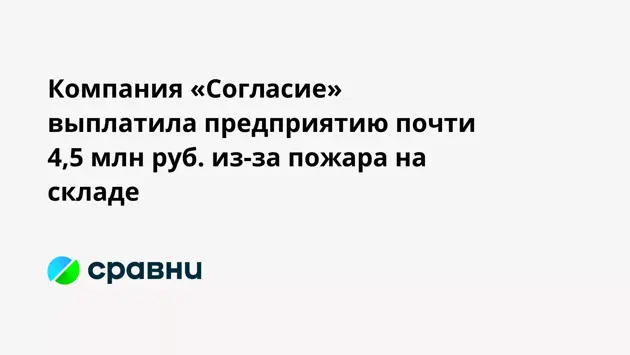 Компания «Согласие» выплатила предприятию почти 4,5 млн руб. из-за пожара на складе