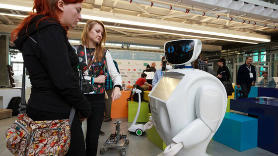 Олег Кривокурцев увлекся роботами в 2013 г. на 5-м курсе Пермского государственного политехнического университета, где учился на инженера-конструктора. Втроем с одногруппником Максимом Утевым и Игорем Еремеевым, аспирантом электротехнического факультета, они сделали робота-снегоуборщика, рассказывает Кривокурцев. Они сняли его на видео и выложили ролик на YouTube. В результате робота приобрел покупатель из Чехии за $3000. Во время университетского конкурса «Большая разведка» партнеры познакомились с пермским бизнес-ангелом Алексеем Южаковым, и эта встреча стала поворотной. Южаков предложил делать роботов для корпоративного применения – в качестве консультантов, промоутеров, экскурсоводов – и вложил 300 000 руб. Компания «Промобот» была создана в 2014 г., Южаков получил в ней долю в 50%, а Кривокурцев с двумя партнерами стали совладельцами. Говорит и показывает К октябрю 2013 г. был готов прототип. У изобретателей был выбор: сделать робот телеприсутствия (он оснащен видеокамерой и микрофоном, а оператор управляет им дистанционно через интернет или GPRS) или полностью автономную модель. По мнению Южакова, автономные роботы перспективнее: они дороже роботов телеприсутствия, но функциональнее и не нуждаются в операторе.