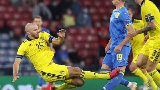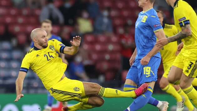 Защитник Швеции Даниэльссон удален за фол на Беседине после ВАР. Украинца заменили из-за травмы