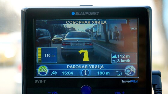 «Видеонавигация» – это ведение по маршруту, где карту на дисплее представляет не анимация с полосками дорог и кубиками домов, а видеоизображение окружающей действительности в реальном времени, снимаемое камерой гаджета! Для этого в задней части корпуса Blaupunkt TravelPilot 700 установлен 2-мегапиксельный «глаз» с автофокусом, который снимает все то, что, по сути, видит водитель своими собственными глазами. И на это видеоизображение накладываются анимированные стрелки указаний движения, отсчет расстояния до маневра в метрах с визуализированной шкалой, а также названия двух улиц – той, по которой вы едете, и улицы ближайшего маневра.