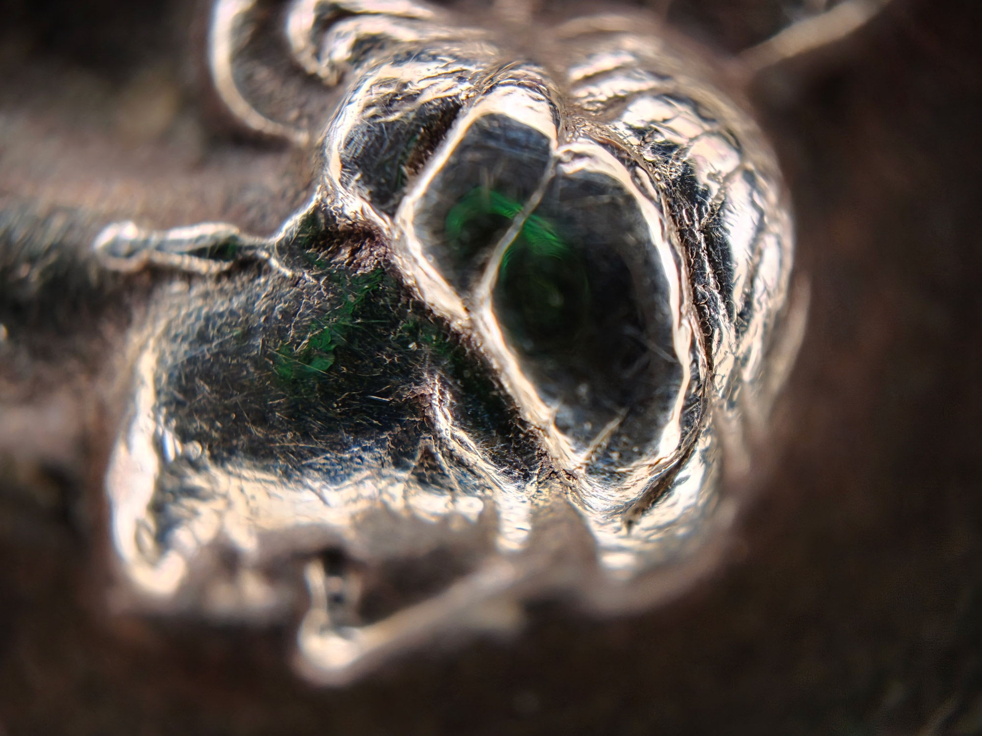 Голова сфинкса на потёртом серебряном кольце.