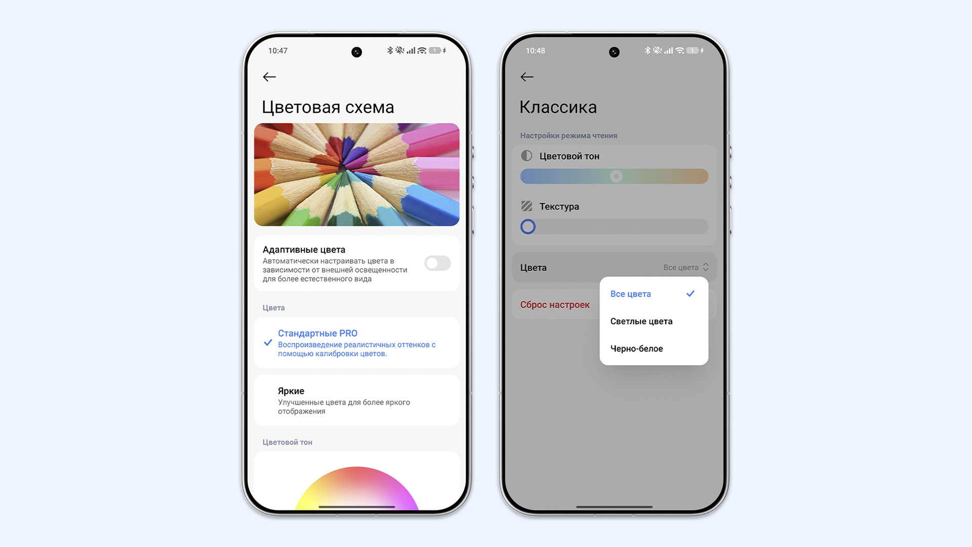 Традиционно для Xiaomi предусмотрена забота о зрении. Матрица поддерживает ШИМ-затемнение на частоте 2160 Гц, поэтому глаза не устают даже при минимальной яркости ночью. В настройках можно активировать продвинутый режим чтения, который имитирует текстуру бумаги и делает цвета теплее, а также включить автоматическую адаптацию цветового тона под окружающее освещение — аналог True Tone.