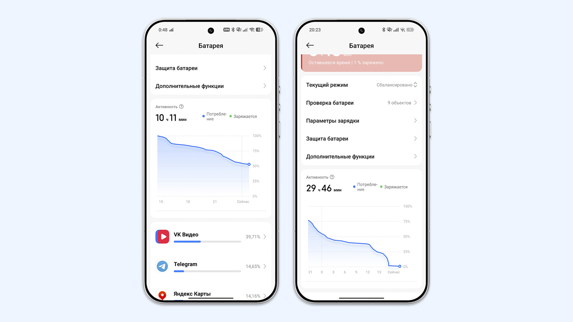 Приятно удивило, что смартфон долго живёт в режиме ожидания на 1%. В 17:30 на смартфоне остался 1%, убрал смартфон в карман — через 3 часа смартфон ещё жив.