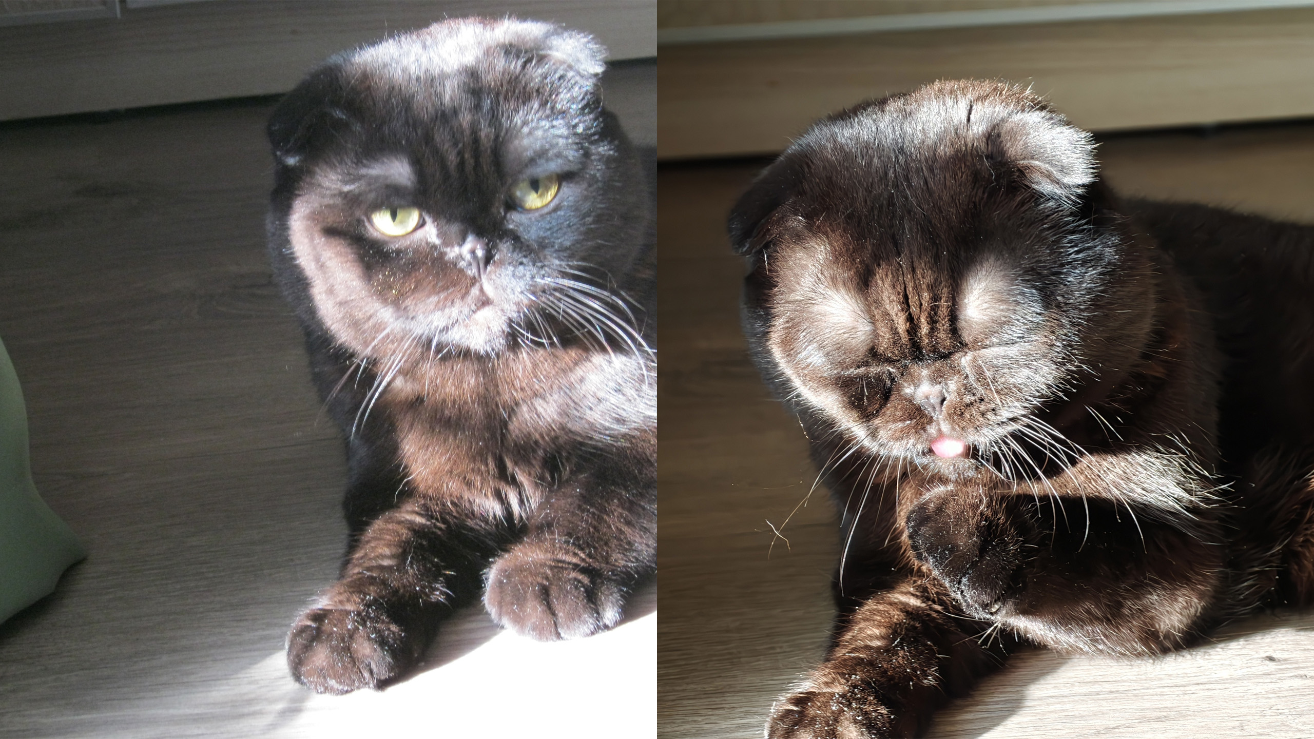 Это моя любимая пара кадров, и здесь современный смартфон безоговорочно лидирует во всём: контраст, цвета, детализация, боке — всё лучше. В случае с камерой проявился один из минусов — лаг затвора. Пока мыльница сфокусировалась и сделала снимок, кот уже перестал позировать.