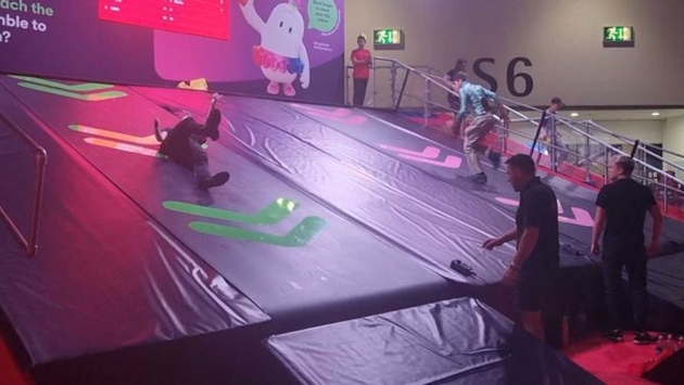 Студия Mediatonic представила Fall Mountain на игровой выставке EGX 2021 — один из уровней из Fall Guys: Ultimate Knockout, перенесенный в реальность. Поучаствовать в необычном соревновании можно в любой день мероприятия.