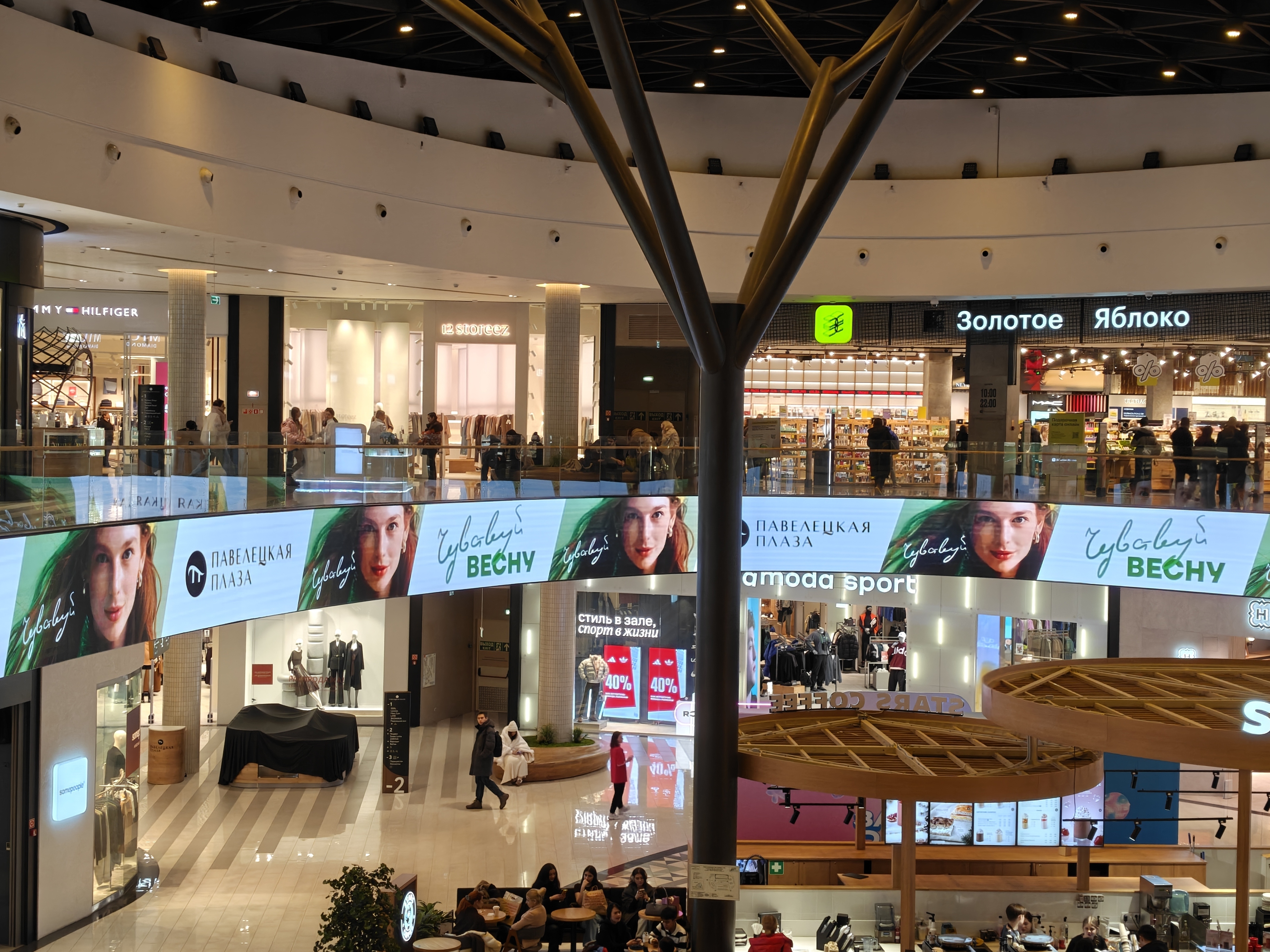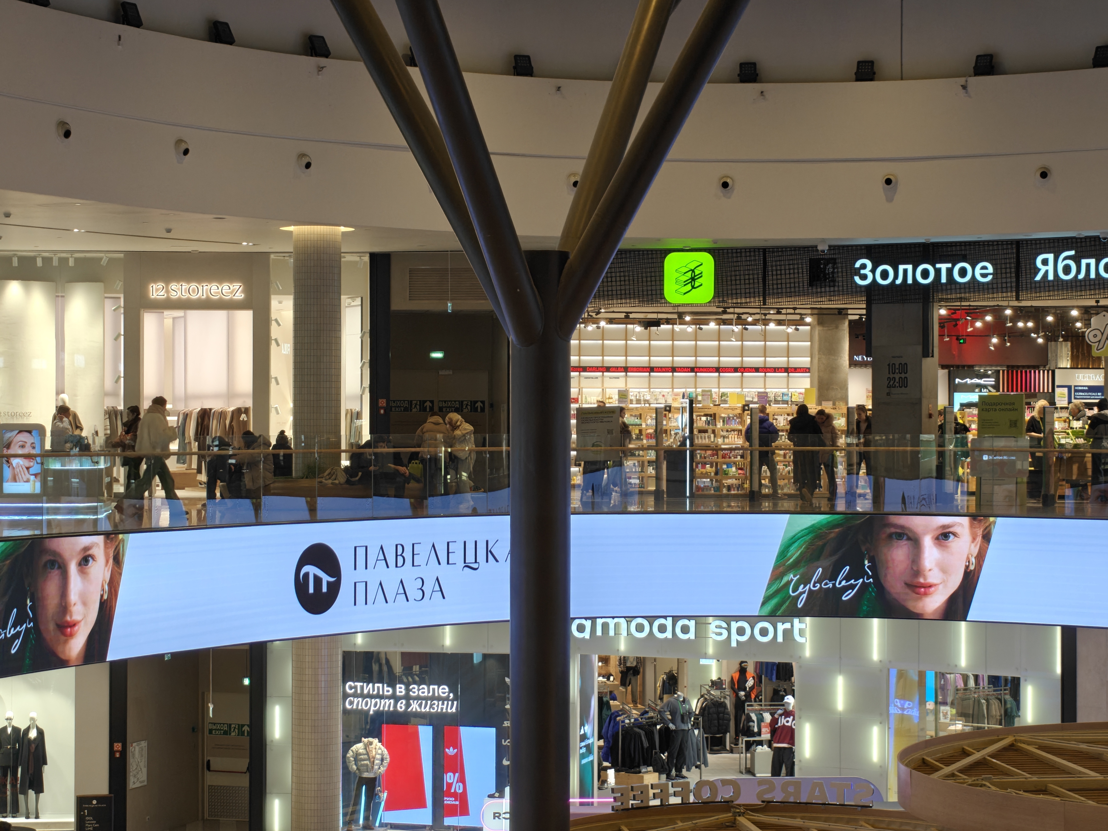 Ночью основная камера держит марку: детали не размываются, экспозиция адекватная, шумов в тенях немного. Проблема в другом — при совсем слабом освещении телеобъектив иногда отказывается работать, и автоматика переключается на кроп с основной камеры. Результат предсказуемо посредственный. При 7-кратном зуме ночью это особенно заметно. Вероятно, дело в алгоритмах: камера решает, что светосильный основной модуль справится лучше «тёмного» телевика, но на практике получается наоборот.