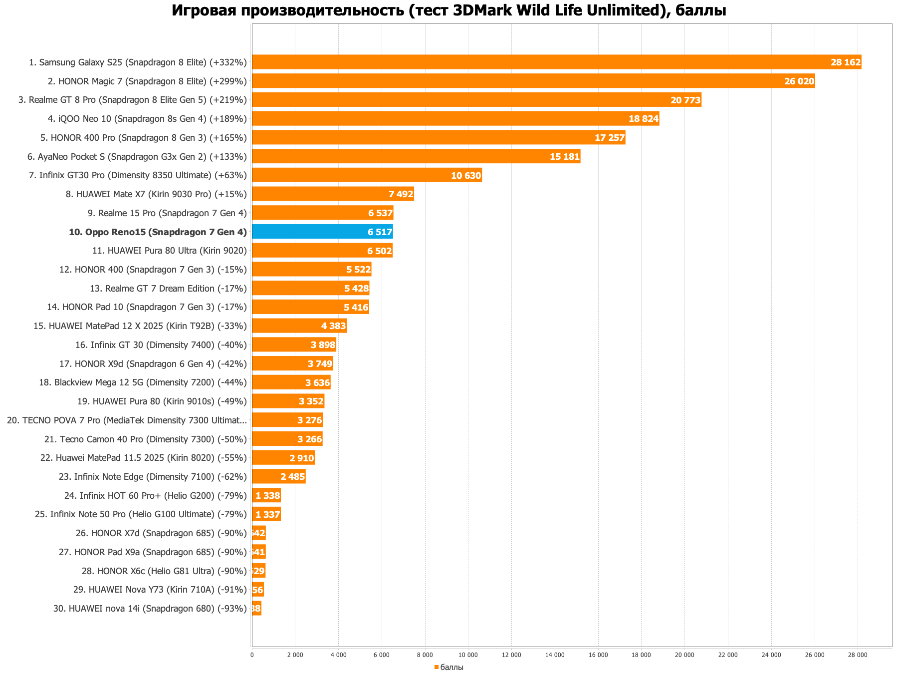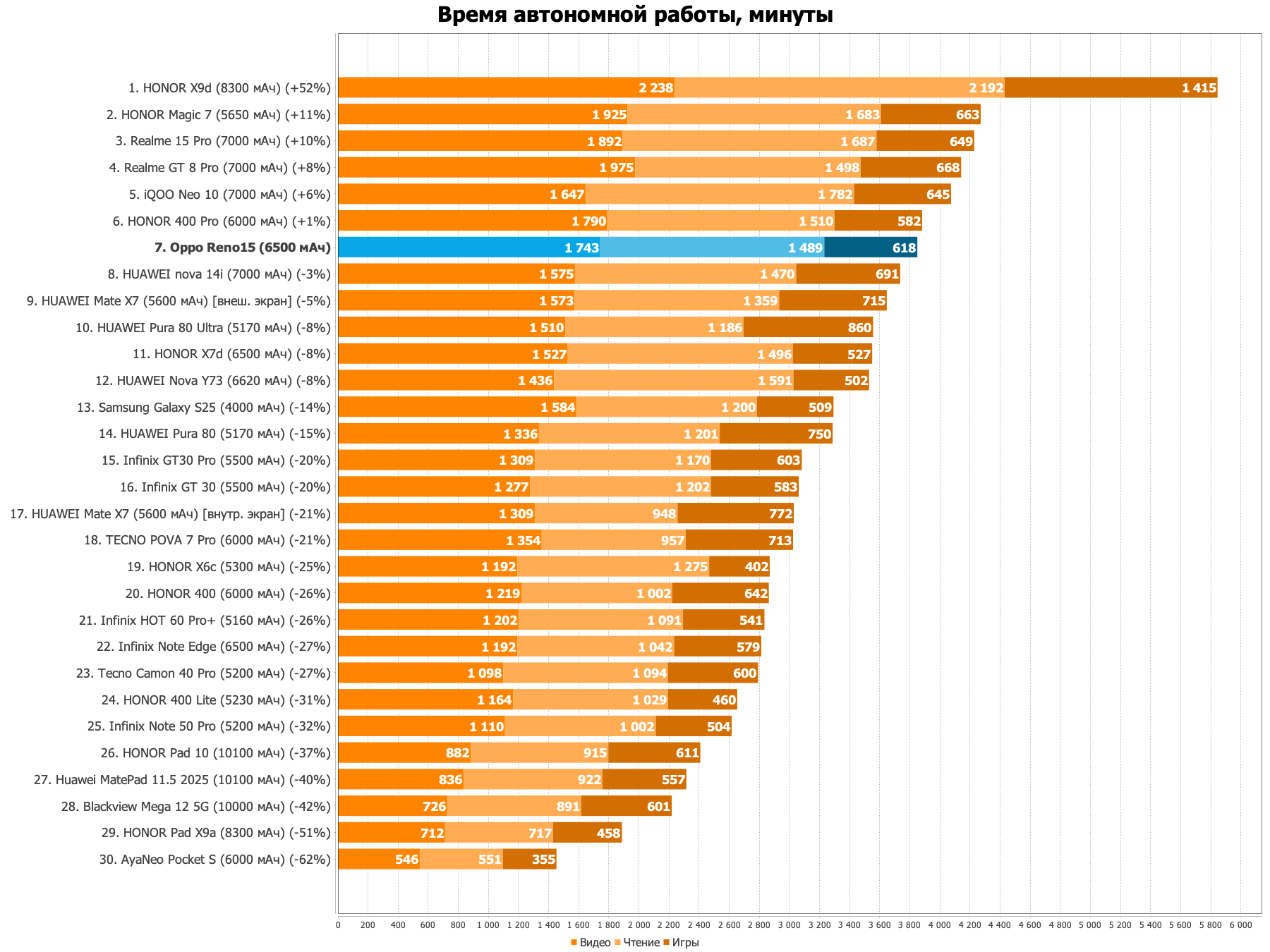 Базовый Honor 400 делает ставку на изящность, заметно выигрывая в эргономике у увесистого оппонента. Смартфон весит скромные 184 грамма при толщине 7,3 мм, щеголяя при этом отличной матрицей с пиковой яркостью до 5000 нит. Вычислительная мощь опирается на прошлогодний Snapdragon 7 Gen 3. В тяжёлых ресурсоёмких играх он ожидаемо уступает свежему Gen 4 из Reno15, хотя общая плавность системы остаётся на эталонном уровне.