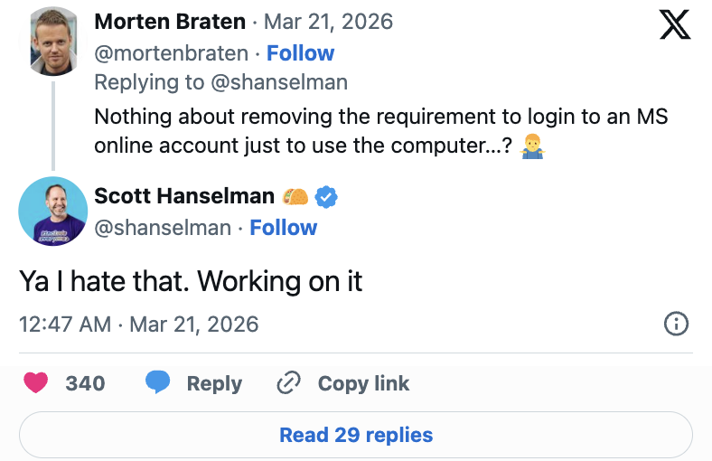 Идею изменений продвигает один из руководителей Microsoft — Скотт Хансельман. Он работает в компании более 20 лет и сам критиковал обязательную авторизацию.