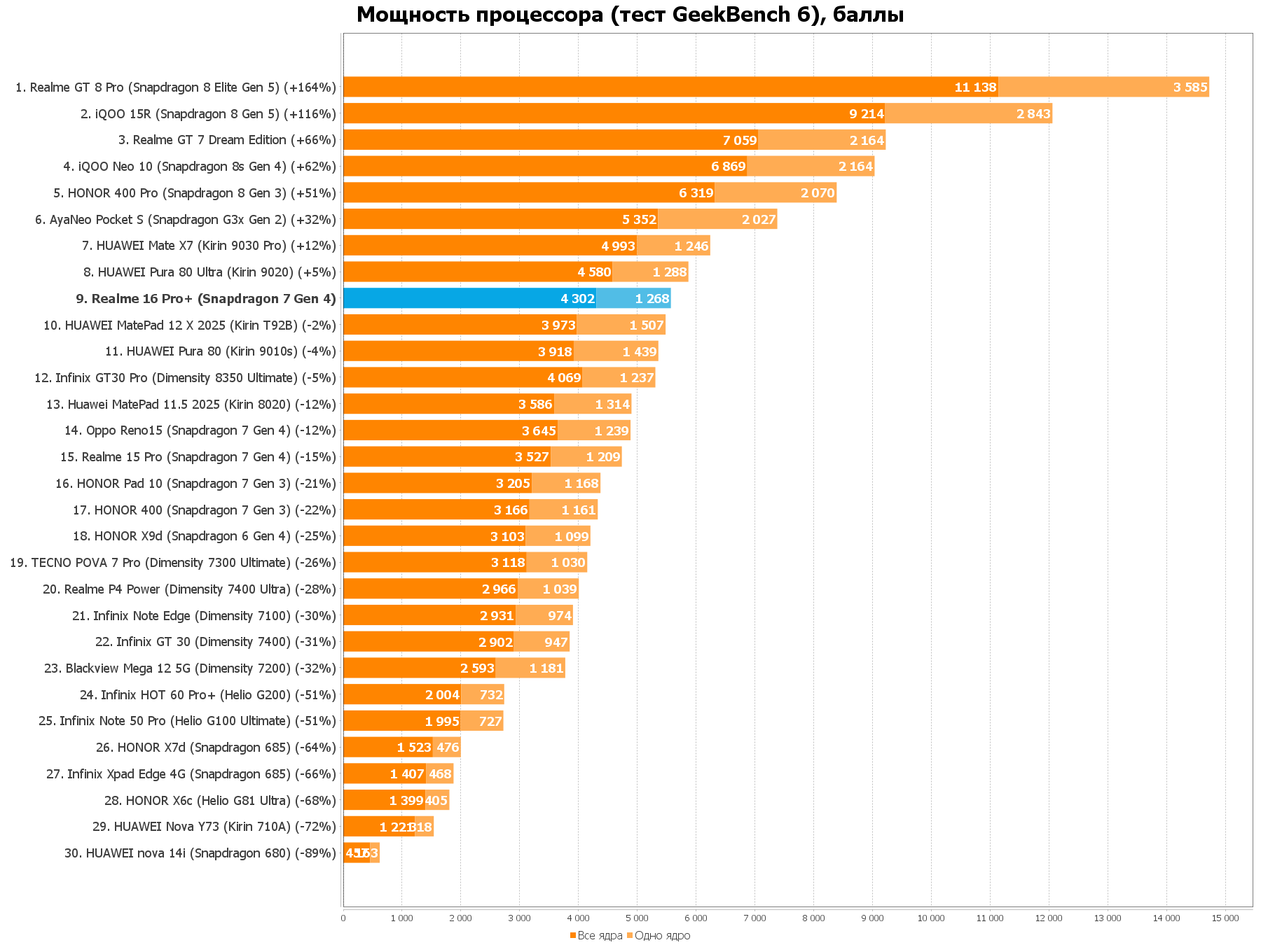 А вот что отличает Realme 16 Pro+ от конкурента, так это батарея на 500 мАч больше и чип, который работает быстрее на 30% судя по результатам наших тестов. В остальном же разница неочевидна, это скорее вариант для тех, кто выбирает между очень похожими смартфонами и опирается на дизайн (у Reno15 он более «айфонистиый» что-ли, меньше скруглённых углов и никаких экранов-водопадов).