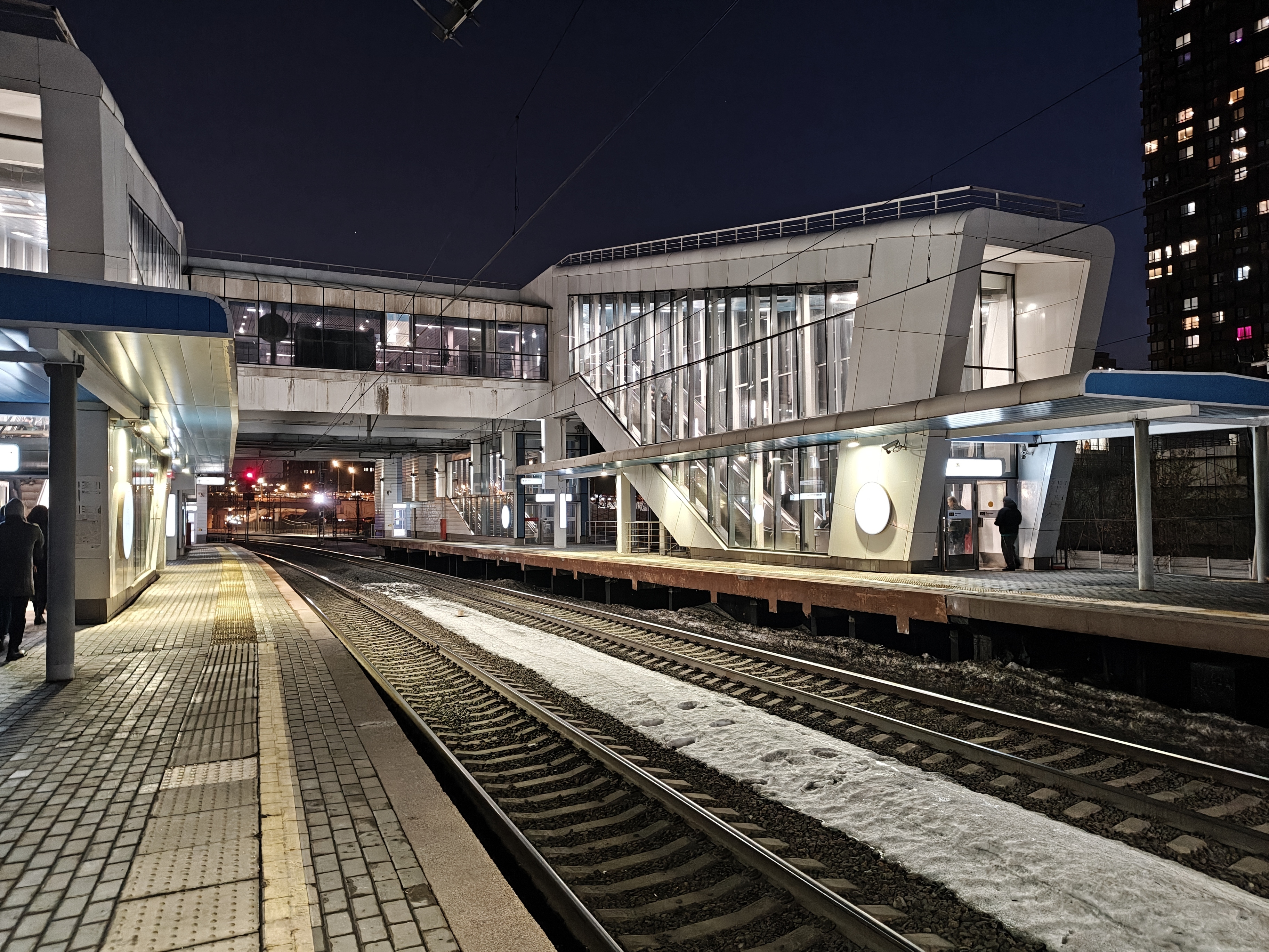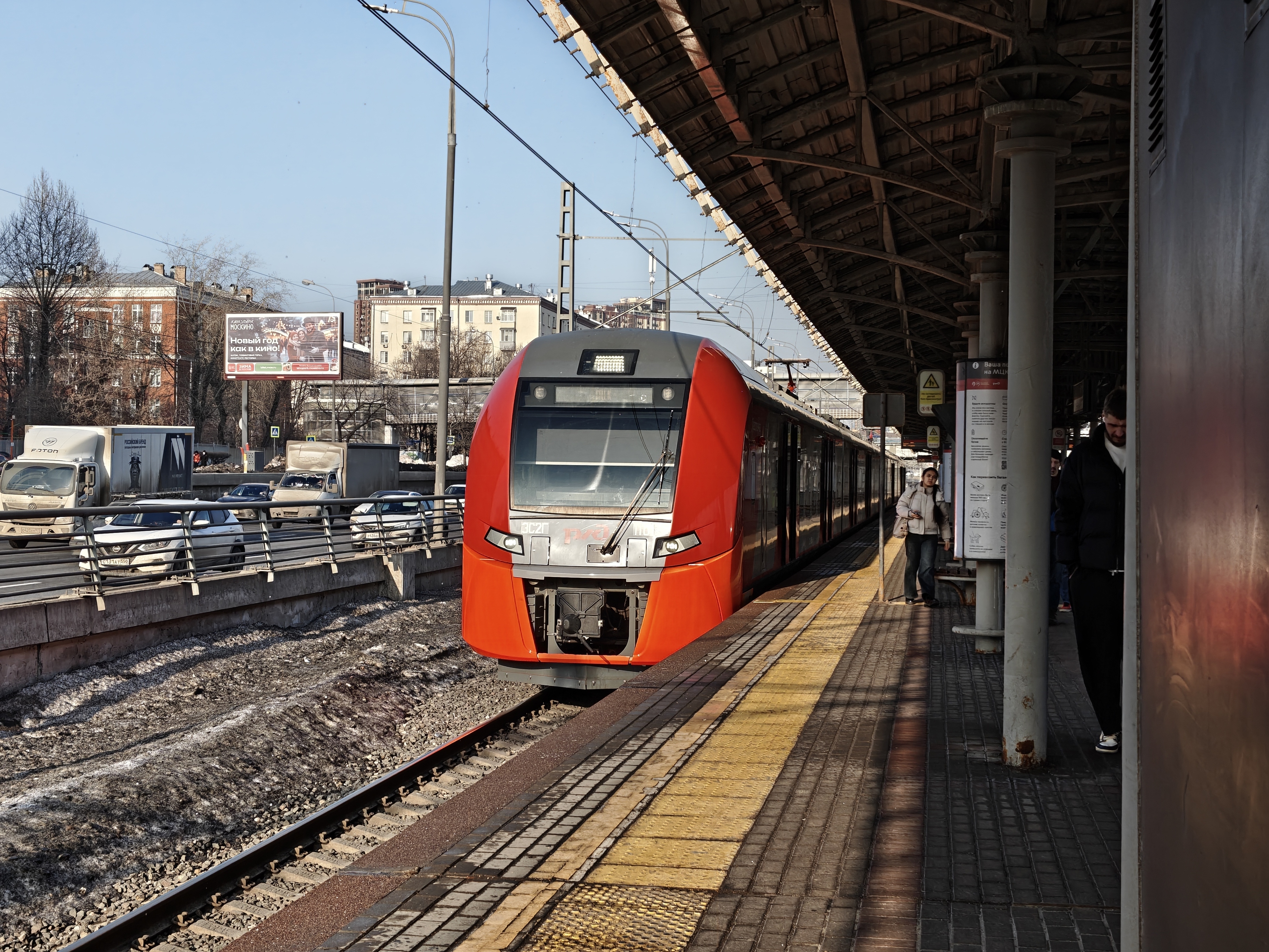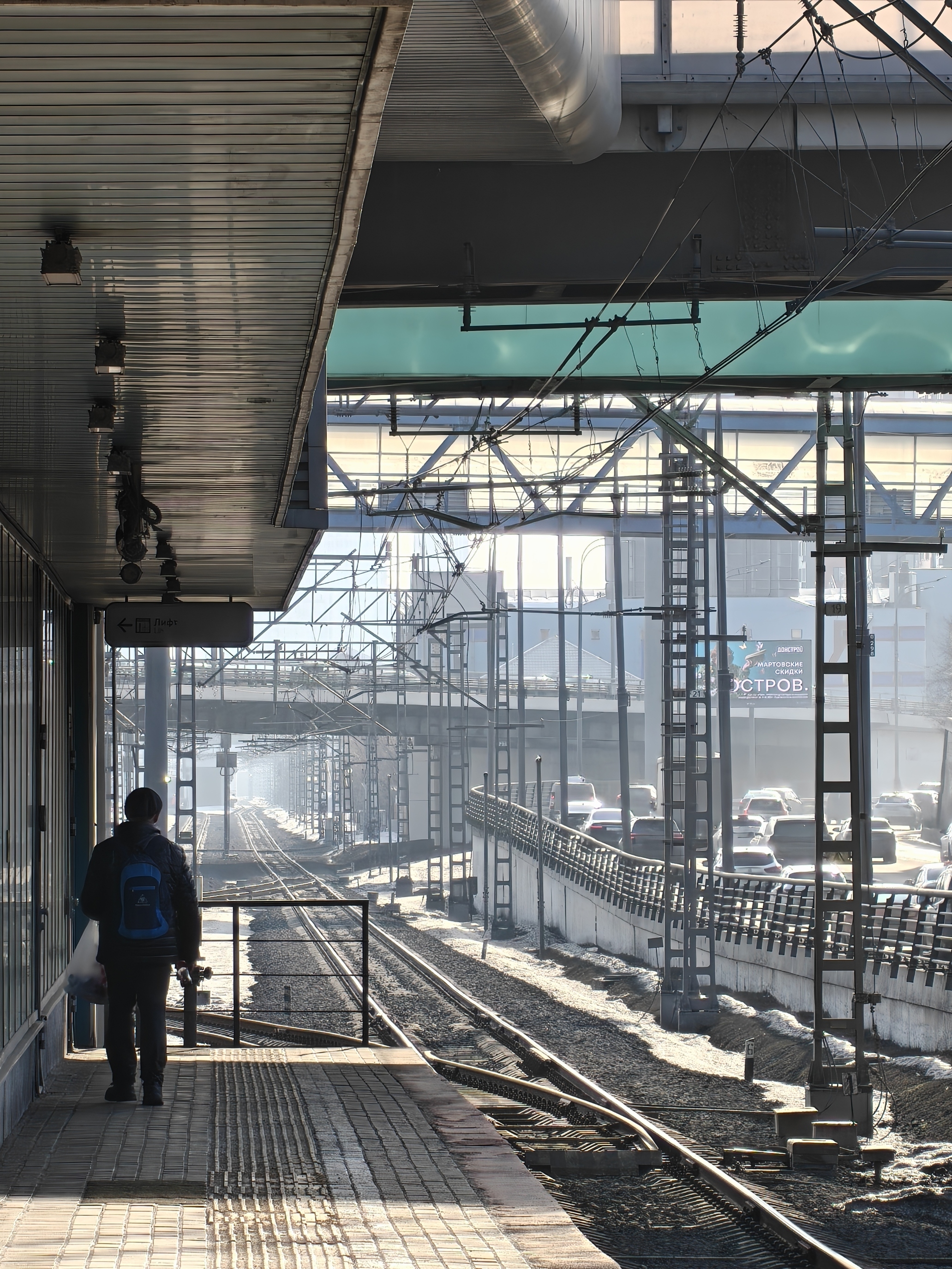 При обычной съёмке в дневных условиях уж очень хорошо получается зум. Например, на фотографии с платформы есть объём в кадре. Картинка получилось не просто плоской, но включила в себя и объект на переднем плане, и дымку от солнца и перспективу уходящих вдаль путей.