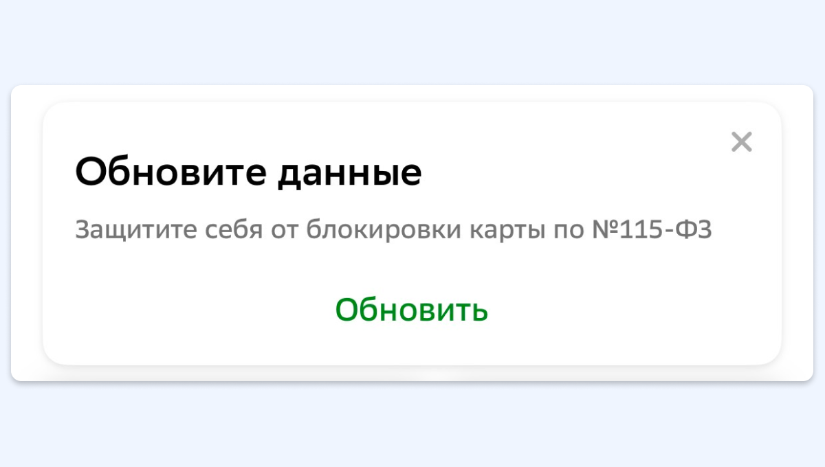 Ничего критичного в этом нет: обновление данных нужно для подтверждения личности и защиты счетов от мошенников. Дело в том, что банки не отслеживают изменения в жизни клиентов автоматически. Например, если пользователь поменяет фамилию или паспорт, финансовая организация не узнает об этом. Чтобы избежать аналогичных ситуаций, банки просят периодически актуализировать информацию.