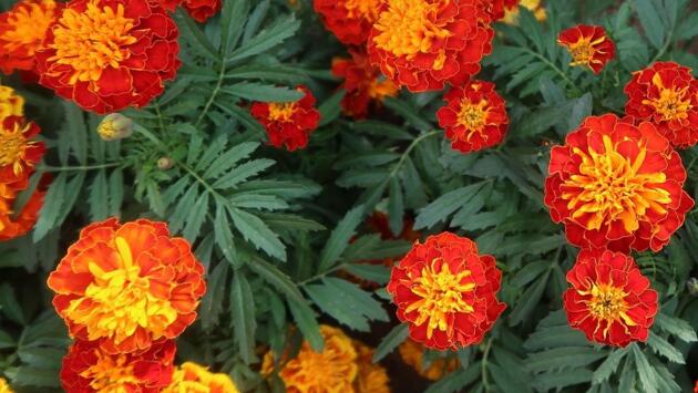 Есть и простой прием, который помогает бархатцам зацвести раньше. После высадки растения обрабатывают вечером, когда ночная температура не опускается ниже +10 °C. Это ускоряет адаптацию после пересадки, кусты быстрее наращивают массу, а цветение начинается раньше.