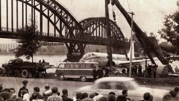 Вынужденное приводнение советского пассажирского самолета на реку в черте Ленинграда, совершенное в августе 1963 года, к счастью, не стало трагедией — в этом происшествии пострадал только сам лайнер. Благодаря снимкам случайного прохожего о необычной авиакатастрофе узнал весь мир. Отказ за отказом Аэрофлотовский пассажирский лайнер Ту-124, летевший из Таллина в Москву 21 августа 1963 года, был практически новый — самолеты этой марки в Советском Союзе начали выпускать только в 1962-м. В то ранее утро на борту «тушки» находились 44 пассажира и 6 членов экипажа. Достоверно известно, что среди пассажиров был будущий Патриарх Всея Руси Алексий II. Практически сразу после взлета экипаж обнаружил, что передняя опора шасси убралась не до конца. Надо было садиться, но таллинский аэропорт не принимал из-за тумана. Диспетчеры направили Ту-124 в пулковский аэродром. В Пулково приготовились встречать борт, которому предстояло сесть на грунтовку. Такое приземление может спровоцировать пожар, поэтому экипаж под командованием В. Я. Мостового начал облет Ленинграда на малой, полукилометровой, высоте для выработки топлива. Тем временем бортинженер воздушного судна Виктор Царев попытался вручную выправить стойку шасси через прорубленную в полу кабины пилотов щель, но безуспешно. Бортпроводница Александра Александрова перенесла из носа лайнера груз в хвост самолета, чтобы облегчить удар носовой части Ту-124 при посадке. При очередном круге над северной столицей у самолета внезапно отказал один из двух двигателей. По показаниям топливомера горючего до Пулково хватало, но лететь на аэродром теперь надо было не в окружную, а прямиком через Ленинград. В небе над Смольным у Ту-124 перестал работать второй двигатель, и датчик топлива почему-то показывал «0», хотя еще несколько минут назад было «200 литров». Счастливое приводнение У экипажа не было времени на раздумья. Единственный выход в сложившейся ситуации — посадка на Неву. По счастливому совпадению в составе экипажа был летчик с опытом посадки воздушных судов на воду - второй пилот В. Г. Чеченев. Прежде он служил в морской авиации. Ему и передал управление лайнером командир экипажа. Приводнение прошло удачно. Никто из находившихся не пострадал. Не разбилась даже ни одна бутылка из четырех ящиков дефицитного тогда пива, которые перевози Ту-124. Снижаясь над строящимся мостом Александра Невского, самолет насмерть перепугал рабочих, некоторые из них даже попрыгали в реку. Как только лайнер коснулся воды, злополучную стойку шасси оторвало, а сам Ту-124 остановился в 50 метрах от железнодорожного моста. Опять по удачному стечению обстоятельств рядом с местом посадки пассажирского лайнера оказался буксир, который сплавлял по Неве бревенчатый плот. Речной тягач отбуксировал Ту-124 к берегу, пассажиры и члены экипажа по плотам сошли на сушу. Спустя считаные минуты после этого самолет затонул. Разбор полета Посмотреть на происшествие собралось много зевак. Они снимали приводнение лайнера на фотопленку. Оцепившая место ЧП милиция разгоняла публику, отбирала фотоаппараты и заставляла засвечивать пленку. Но одному из свидетелей произошедшего, Юрию Туйску, удалось сохранить отснятое. Потом его фотографии попали в советские и зарубежные СМИ. Поначалу всю вину за авиакатастрофу хотели свалить на экипаж — дескать, не д