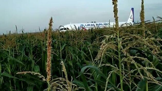 Утром самолет Уральских авиалиний, летевший в Симферополь, совершил аварийную посадку в километре от взлетно-посадочной полосы аэропорта Жуковский — на кукурузное поле.