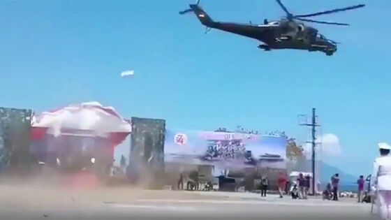 В Индонезии во время военного парада произошел конфуз с вертолетом российского производства: Ми-35 пролетел на предельно низкой высоте над трибунами, в результате чего потоком воздуха сорвало праздничные плакаты и временные конструкции. В этот момент на мероприятии маршировали военные.