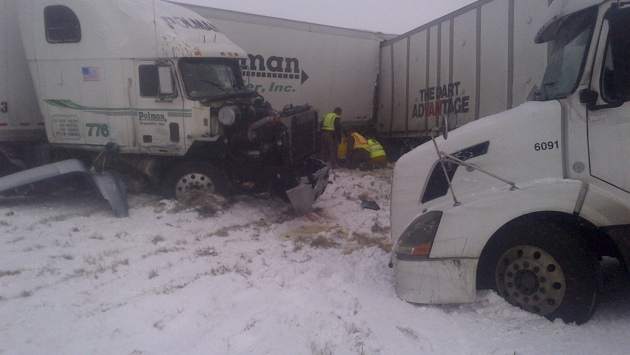 В штате Айова на одной из дорог столкнулись 50 автомобилей. Из-за сильнейшего снегопада водители не справились с управлением, что и послужило образованию массовой аварии на дороге.