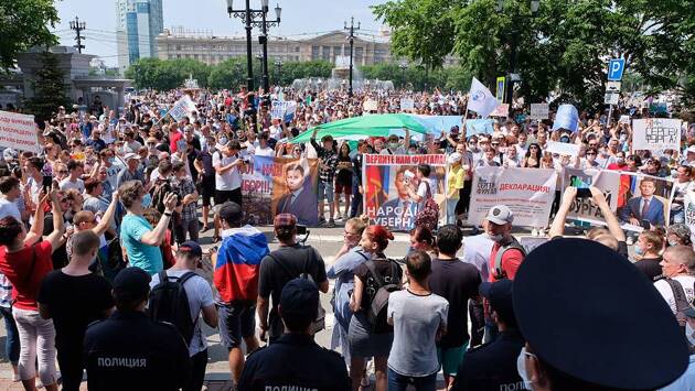 Несанкционированный митинг в поддержку арестованного губернатора Хабаровского края Сергея Фургала в Хабаровске собрал в субботу до 10 тыс. человек, сообщается на официальном сайте мэрии города.