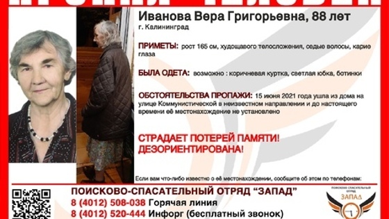 Последней пенсионерку видела кондуктор автобуса №19. Сотрудница транспортного предприятия рассказала, что пожилая пассажирка доехала до конечной, сказала, что живёт на Коммунистической, и её довезли до нужной остановки. Пенсионерка осталась там стоять. Волонтёры не исключают, что калининградка могла сесть в другой автобус, и ищут свидетелей.