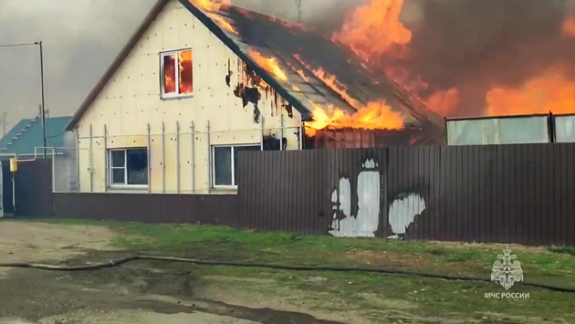 Последствия крупного пожара в деревне Логоушка Курганской области показали на видео. Кадры в пятницу, 28 апреля, публикуют «Известия» в своем Telegram-канале.