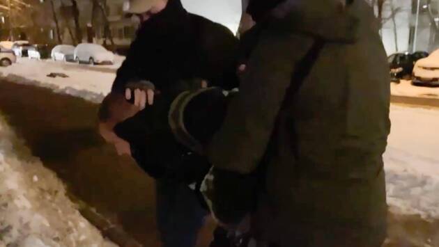 На кадрах видно, как силовики ведут фигуранта в наручниках к служебному авто. Его доставляют в Следственное управление по Юго-Западному административному округу для допроса. Гражданин признает вину, рассказывая, что за подрыв состава его обещали вывезти на территорию Украины.