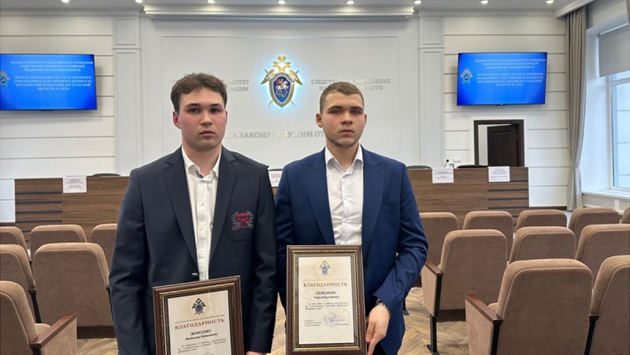 СУ СКР по Тульской области наградило благодарностями Егора Селезнева и Владислава Морозова, которые помогли 14-летней девушки отбиться от насильника. Награды вручили во время празднования 13-годовщины со дня образования СКР.