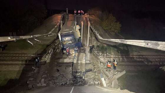 МЧС РФ: на месте обрушения моста в Крыму работают специалисты и спецтехникаАвтомобильный мост, обрушившийся в Крыму, находился над железнодорожным полотном. В настоящее время на месте работают 43 специалиста и 16 единиц спецтехники. Все пострадавшие доставлены в медучреждения для оказания помощи. Об этом сообщили в МЧС РФ. «По уточненной информации: автомобильный мост обрушился над железнодорожным полотном. Сотрудники МЧС России деблокировали пострадавших и передали врачам. На месте работают 43 специалиста и 16 единиц техники», – говорится в сообщении ведомства. Ранее стало известно, что часть автомобильного моста обрушилась в Крыму между селами Изумрудное и Маслово, дорожное полотно повреждено, есть двое пострадавших. Советник главы Крыма Олег Крючков со ссылкой на компанию «Крымавтодор» сообщил, что в связи с разрушением путепровода на автомобильной трассе Воинка – Джанкой объезд будет осуществляться через населенные пункты Маслово, Завет-Ленинский, Ермаково. Согласно данным telegram-канала Baza, обрушение моста произошло, когда по нему проезжала фура, груженная морковью. По словам водителя, масса груза составляла 21 тонну, при грузоподъемности моста 18 тонн. Источник: t.me/mchs_official