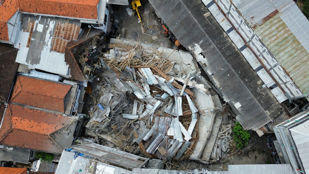 Спасатели подают кислород тем, кто находится под завалами, и отчаянно пытаются освободить выживших, оказавшихся в ловушке из нестабильных бетонных остатков школы в Восточной Яве спустя более 12 часов после обрушения здания.