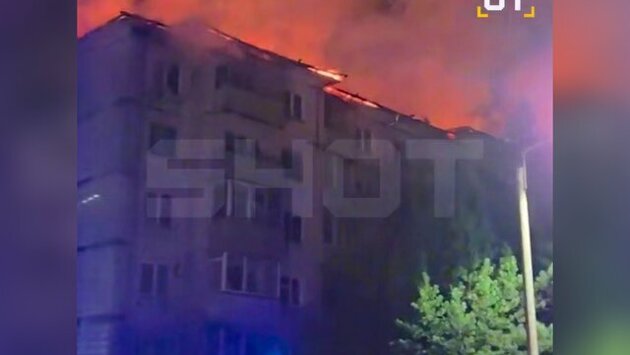 Сообщения о возможных пострадавших пока не поступали. В данный момент огнеборцы продолжают тушить возгорание. Отмечается, что огонь быстро распространился на крышу здания.