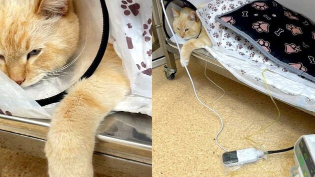 Когда кот оказался на смотровом столе, у него начались судороги и произошла остановка сердца. Врачи провели реанимацию, установили уретральный катетер и разрешили задержку мочи, после чего сердце заработало. Затем кота направили на сутки в стационар.