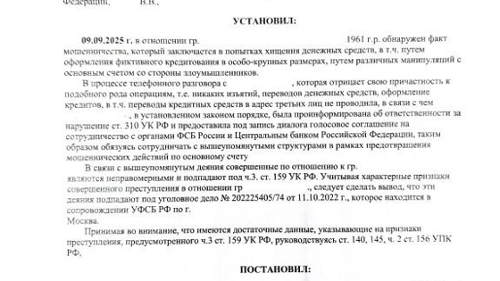 Потом махинатор убедил горожанку обналичить деньги и передать на проверку. Женщина ради конспирации купила другой мобильник и чистила всю переписку. Снятые 3 млн рублей дама передала курьеру, который показал "акт передачи денежных средств" и поддельное постановление о приобщении ее "эпизода" к уголовному делу.