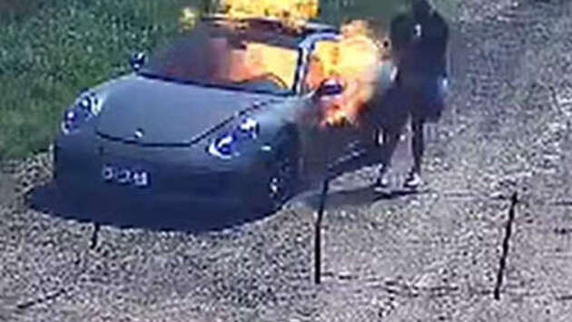 Мужчина попал на камеру, когда поджигал свой Porsche, чтобы получить страховку