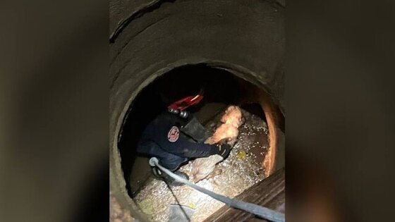 В Москве спасли спаниеля, провалившегося в канализационный люк
