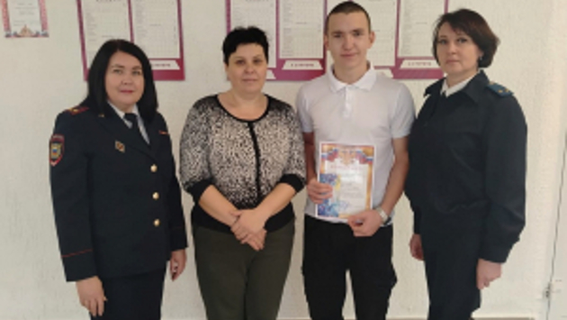 В начале октября текущего года у жительницы одного из сёл Куртамышского округа после распития спиртного произошёл конфликт с бывшим сожителем. Словесная ссора перешла в драку за оградой дома. В процессе драки мужчина взял полено и стал наносить женщине телесные повреждения. В это время домой возвращался 15-летний подросток, проживающий по соседству, и стал свидетелем конфликта. Он выхватил полено у мужчины и оттолкнул его от потерпевшей. На улицу вышли другие соседи и помогли урегулировать конфликт. Когда женщина обратилась за медицинской помощью, информация об инциденте поступила в полицию. По данному факту в межмуниципальном отделе МВД России «Куртамышский» возбуждено уголовное дело по признакам преступления, предусмотренного частью 2 статьи 115 УК РФ «Умышленное причинение лёгкого вреда здоровью». В отношении подозреваемого избрана мера пресечения в виде подписки о невыезде и надлежащем поведении. Потерпевшая сообщила полицейским о помощи, которую ей оказал подросток. В День сотрудника органов внутренних дел полицейские посетили школу, где обучается молодой человек. На торжественной линейке заместитель начальника МО МВД России «Куртамышский» (курирующий работу с личным составом) подполковник полиции Татьяна Баранова вручила юноше благодарственное письмо от имени руководства межмуниципального отдела за проявленную высокую ответственность при выполнении гражданского долга, пожелала успехов в учёбе и пригласила на службу в полицию. Правоохранители также поблагодарили мать подростка, которая является работником школы, за хорошее воспитание сына.