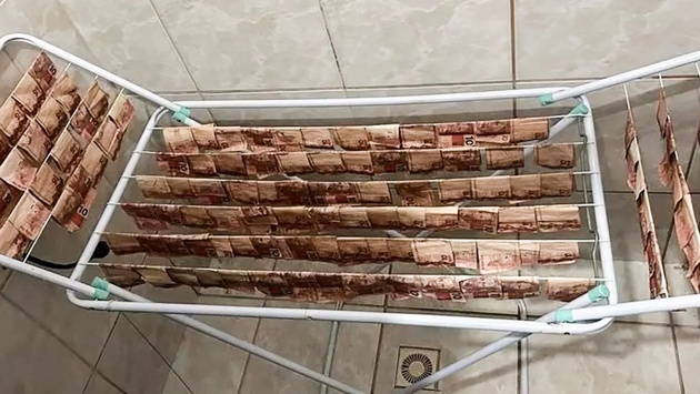 Полиция Бразилии во время операции против мошенников обнаружила банкноты, аккуратно развешанные на сушилке для белья. Об этом сообщает бразильская новостная платформа Globo.
