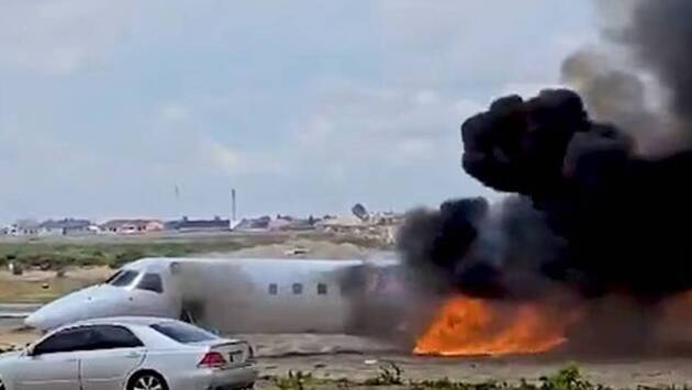 В Демократической Республике Конго (ДРК) самолет с министром промышленности Луи Кабамбой выкатился за пределы взлетно-посадочной полосы (ВПП) и загорелся. Пожар попал на видео, которое публикует Daily Mail.
