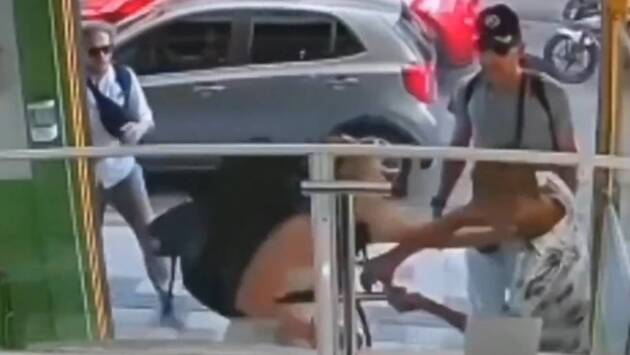 Уточняется, что инцидент произошел с парой американцев в Колумбии. Когда туристы шли по улице, на женщину внезапно набросился вооруженный незнакомец с целью украсть ее вещи. На размещенных в сети кадрах американка борется со злоумышленником, который пытается перерезать лямку рюкзака, в то время как ее спутник отступает и прячется за ближайшей стеной.