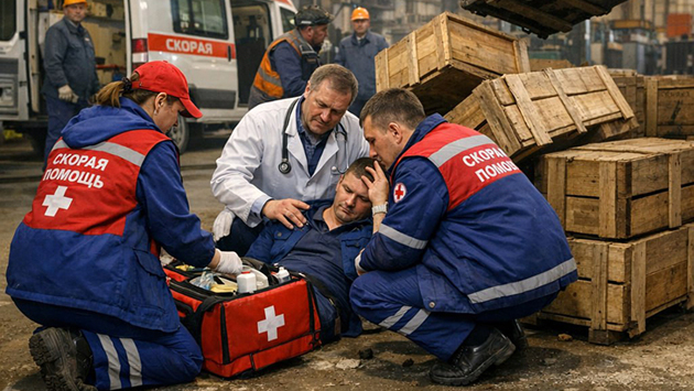 Сорвавшийся с высоты ящик проломил голову рабочего на заводе в Искитиме