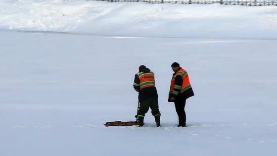 Прибывшие на место полицейские попытались уговорить его вернуться, однако один из сотрудников правоохранительных органов также провалился под лед, пытаясь помочь.